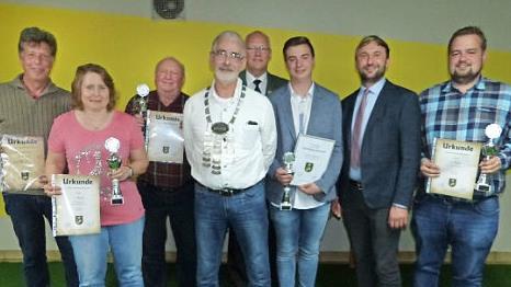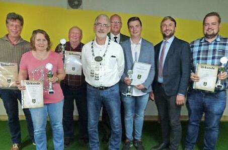 Mit 63 Mannschaften verzeichneten die Pressecker Schützen beim Vereinsvergleichsschießen eine neue Rekordbeteiligung. Als neuer Marktkönig grüßt Burkhard Krenz vom Frankenwaldverein mit einem 76,8-Teiler. Ihm folgten Elmar Gahn (SPD) und Willi Jahn (Jäger/Wehr Schlackenreuth). "Es freut mich, dass so viele Teams mitgemacht haben. Das zeigt, dass die Schützen goldrichtig liegen", sagte Christian Ruppert für die Marktgemeinde. Klaus-Peter Wulf