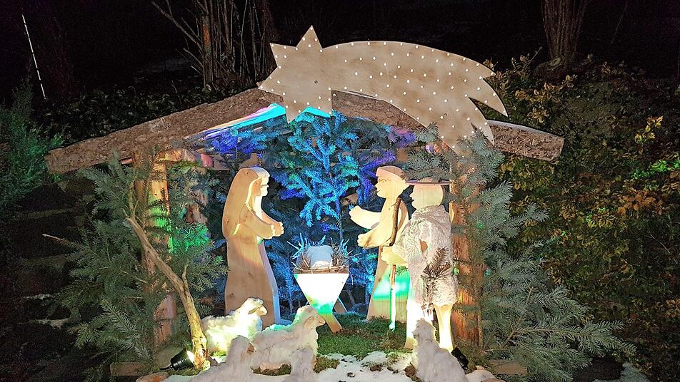 Auf die Krippenausstellung, die zum 17. Male in Folge stattgefunden hätte, mussten die Nurner und die auswärtigen Stammbesucher diesmal verzichten. Ein Krippenbildnis gibt es aber dennoch im Steinwiesener Gemeindeteil zu bestaunen. So leuchtet der Stern von Bethlehem seit Beginn der Adventszeit inmitten der Ortschaft über einer Krippe mit größeren aus Holz gefertigten Figuren. Die Bestrahlung erzeugt eine angenehme abendliche Weihnachtsstimmung. Ergänzt wird das Gesamtbild in der Nurner Ortsmitte durch entsprechende Ausgestaltung des daneben befindlichen Brunnens. hf