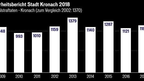 "Der Trend der letzten Jahre bei den Kriminalstraftaten ist ziemlich konstant", so Herrmann. "Die Aufklärungsquote ist sehr gut." 1186 Straftaten wurden 2017 in der Kreisstadt gemeldet, 76,5 Prozent aufgeklärt. Das ringt dem Polizeichef ein großes Lob für seine Kollegen ab. Und er unterstreicht: "Im Landkreis ist die Welt noch in Ordnung, in der Stadt Kronach lebt sich's relativ sicher!"