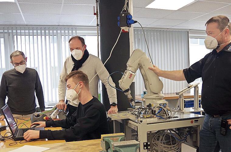 Bei dem gemeinsamen Projekt beider Berufsschulen programmieren Lernende aus Spanien aus der Ferne eine Steuerung der Firma Siemens , die via IO-Link mit einem Abstandssensor und einer Kontrollleuchte kommuniziert. Der IO-Link ist ein internationaler Standard bei der Kommunikation intelligenter Sensoren und Aktoren. Für die Spanier ist die Thematik eine große Herausforderung, da sie mit diesem Industriestandard bisher keine Erfahrungen sammelten.