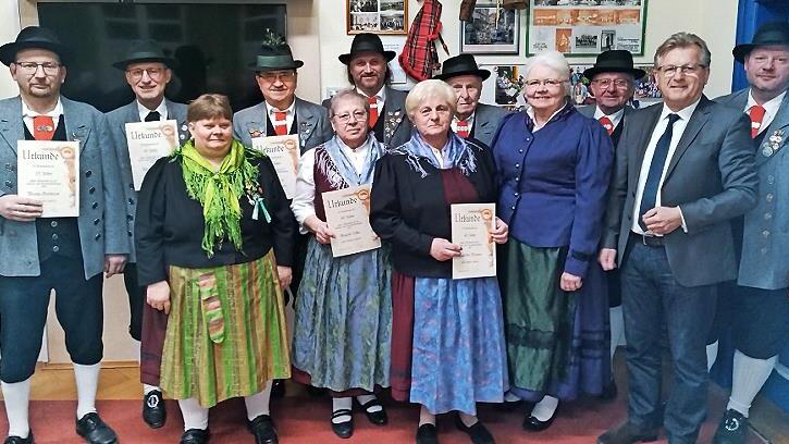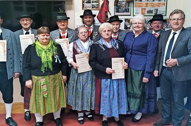 Vom Trachtengauverband Oberfranken ehrte Renate Koch und Bürgermeister Rainer Detsch die Mitglieder für 25 und 40 Jahre aktive Mitgliedschaft.