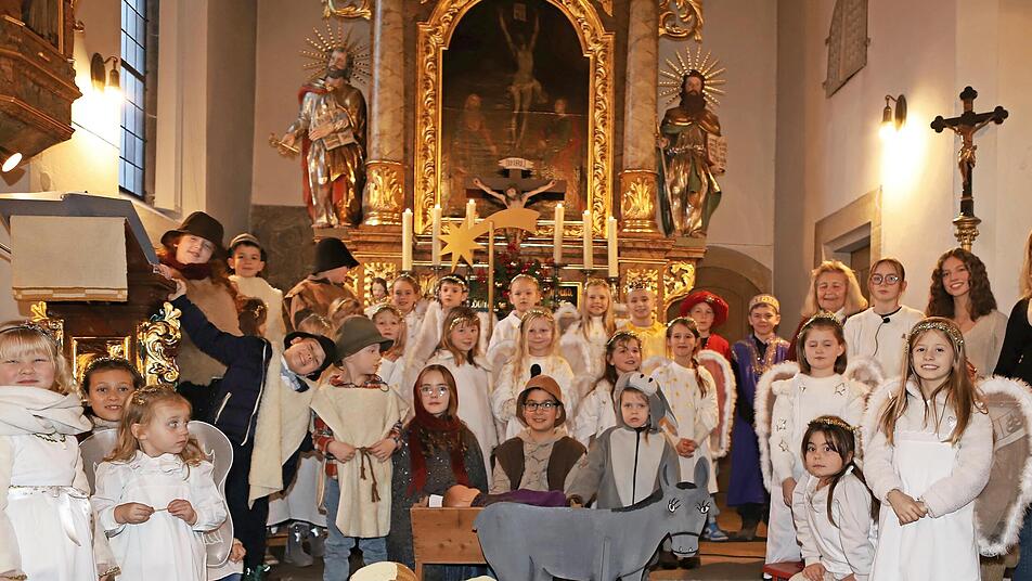 Nachdem Maria und Josef im Stall einen Platz gefunden hatten, überbrachte die singende Engelschar, bestehend aus 17 Engeln – so viele waren noch nie in Weißenbrunn in der Kirche –, den Hirten die frohe Botschaft. Schließlich fanden auch die Könige das Kind in der Krippe.
