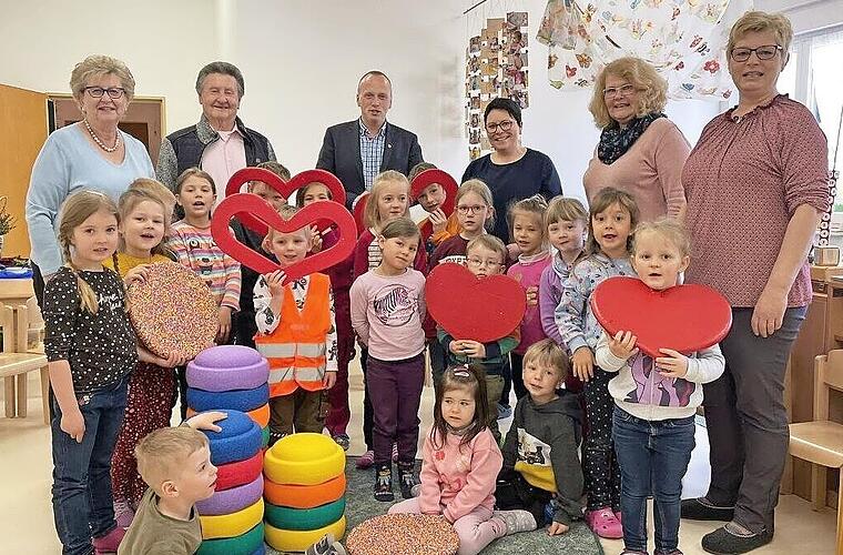 Der katholische Kindergarten St. Elisabeth Buchbach freute sich über eine großherzige Spende der Hilfsaktion „1000 Herzen für Kronach“, die zur Abrundung des Spielsortiments in der Einrichtung 500 Euro zur Verfügung stellte. Von dem Geld werden Stapelsteine angeschafft, mit denen die Kinder Türme bauen und Kletterübungen machen können. Sie dienen aber auch der Kreativitätsanregung für verschiedene Formgebungen und fordern auch zu Balanceübungen heraus. Kindergartenleiterin Anne Wicklein hob in ihren Dankesworten hervor, dass durch diese Stapelsteine Körper und Geist gleichermaßen gefördert und geschult werden.