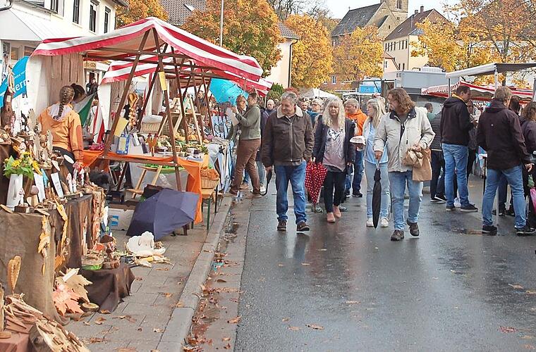 Eine bunte Palette an herbstlichen Waren präsentierten die Händler, die sich rund ums Rathaus platziert hatten. Zu kaufen gab es liebevoll Gebasteltes, Genähtes, Gestricktes, Gesticktes, Geschnitztes, Kränze, Grabfloristik und vieles weitere mehr. Auch Dinge des täglichen Bedarfs wie Gewürze, Hanfprodukte, Honig oder Seife wurden angeboten.