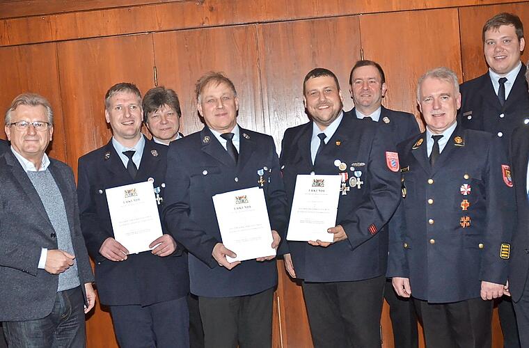 Im Anschluss zeichneten Vorsitzender Benedikt Zehnter und Bürgermeister Rainer Detsch zahlreiche langjährig treue Mitglieder aus: für 60 Jahre Georg Buckreus, Georg Vorndran, Andreas Endes, Alfons Rauh, Dietmar Wich; 50 Jahre: Ehrenkommandant Harald Rauh, Franz-Dieter Gebhardt, Reinhard Conradi, Johannes Heinisch, Ludwig Kopp; 40 Jahre: Claus Fröba, Cordula Dauer, Gerd Kreul, Gabriele Krautwurst, Heidi Conradi, Heinrich Hannweber, Helmut Förtsch; 25 Jahre: Bastian Förtsch, Peter Beetz, Stefan Beetz , Carolin Kleine-Herzbruch, Manfred Gebhardt, Martin Buckreus und Thorsten Güthlein.