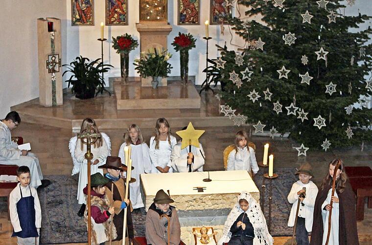 In der Kindermette am Heiligen Abend führten die Kinder der Grundschule Nordhalben das Krippenspiel in der Pfarrkirche St. Bartholomäus auf. Der Stern und die Engel leuchten, als das kleine...