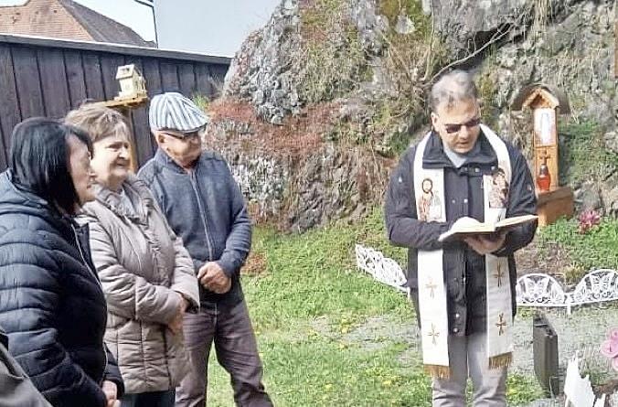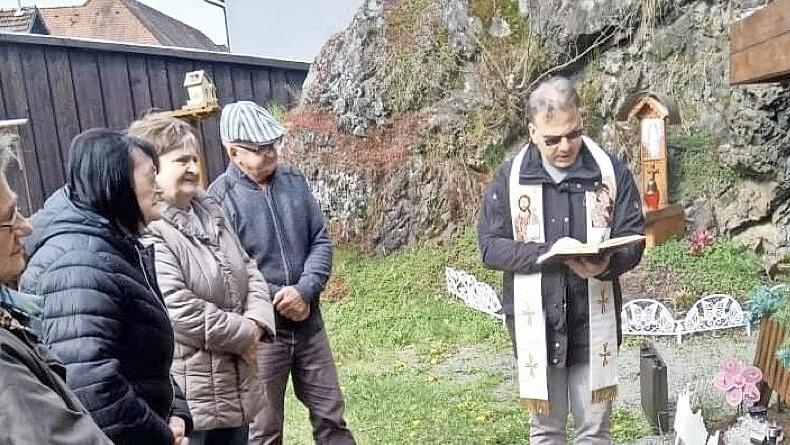 Pfarrer Richard F. Reis segnete die kleine Kapelle in der Dr.-Max-Schwaab-Straße. Für Erbauer Gottwin Vogler war es ein großes Anliegen, dass diese nahe den Felsenkellern errichtet Kapelle auch den kirchlichen Segen erhält. Aus Dankbarkeit einer überstandenen schweren Krankheit und zum Gedenken an Corona und den Krieg hat er diese kleine Kapelle errichtet. Viele Stunden Arbeit hat er neben dem Geld für die Ausstattung investiert. Der Pfarrer meinte, dass diese Stätte zum Gedenken dient und die Leute hier zur Besinnung kommen. Es sei alles wunderschön gemacht und man sehe, dass Gott die Menschen nicht alleine lässt. Die Kapelle sei wie der herumführende Zaun in der Nacht beleuchtet, aber auch überwacht. Wie Gottwin Vogler erklärte, kommen immer wieder Leute, auch von außerhalb Steinwiesen , zu seinen Anwesen und bestaunen die Kapelle.