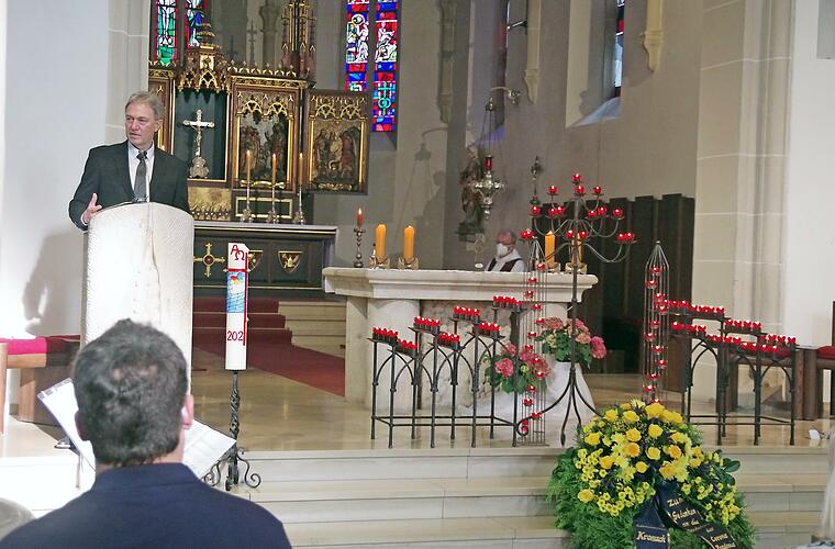 „Du hast uns mit deiner ehrenden und persönlichen Gedenkrede aus dem Herzen gesprochen“, meinte Stadtpfarrer Thomas Teuchgräber, der die ökumenische Gedenkstunde gemeinsam mit Dekanin Ulrike Schorn sowie Dekan Markus Müller leitete. In den Fürbitten eingeschlossen waren auch die Opfer der Flutkatastrophe .