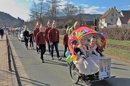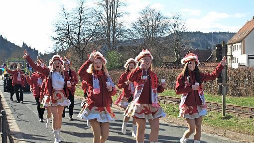 Begleitet wurden die beiden vom Kinderprinzenpaar Leo I. und Elisa I. Sie wurden in der neuen Rikscha der Caritas von Luisa Thron chauffiert und zogen mit ihrem bunt geschmückten Gefährt die vielen Blicke auf sich. Spontan sein, das war heuer die Devise, planen konnte man nicht und so war es eine nette Überraschung, dass auch das Neufanger Prinzenpaar, Prinz Gerd I. und Prinzessin Tanja I., mit seiner Prinzengarde den Weg nach Steinwiesen gefunden hatte. Einige Narren aus Teuschnitz, die sonst immer stark vertreten mit Wagen und Fußgruppen beim Faschingsumzug dabei sind, reihten sich ebenfalls in den kleinen Zug ein. Zusammen mit den hübschen Mädels der Prinzengarde, Juniorengarde und der Kinder- und Jugendgarde zeigten sich die Jungs des Jugendelferrates und die gestandenen Mannsbilder des Elferrates in ihren schmucken roten Jacken den Zuschauern, die sich doch an den Straßenrändern versammelt hatten. Das Präsidium und ein paar kostümierte Narren vervollständigten das bunte Bild, das wenigstens für eine Stunde etwas vom Weltgeschehen ablenkte. Über all dem Trubel und den vereinzelten Helau-Rufen schwebte die Melodie eines Liedes, das extra für die beiden Prinzenpaare aus Steinwiesen geschrieben wurde, und die markante Hupe des „MB Trac 800“ tönte durch die Straßen und Gassen. sd