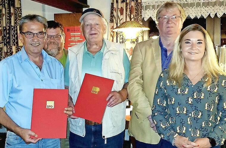 Geehrt wurden Hans-Jürgen Raab, der für 50-jährige Treue und Harald Eckert, der den Sozialdemokraten schon seit 55 Jahre angehört. Pütterich nannte Eckert den „roten Leuchtturm“ im SPD-Ortsverein , der allen Stürmen und Turbulenzen innerhalb der Partei standgehalten habe.