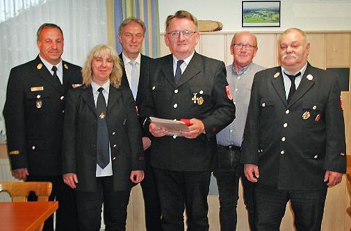 Roland Truch versieht seit 40 Jahren Dienst bei der Feuerwehr in Heinersberg . Bei der Jahreshauptversammlung wurde er hierfür mit einer Dankurkunde und dem staatlichen Ehrenzeichen in Gold bedacht, die Kreisbrandinspektor Frank Fischer überreichte.