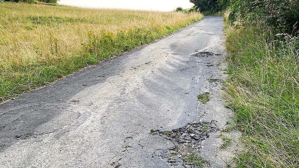 Stadtrat Auf der ohnehin sanierungsbedürftigen Straße zwischen Wallenfels und Langenau hat der starke Regen in der Vorwoche die Flickstellen ausgeschwemmt.