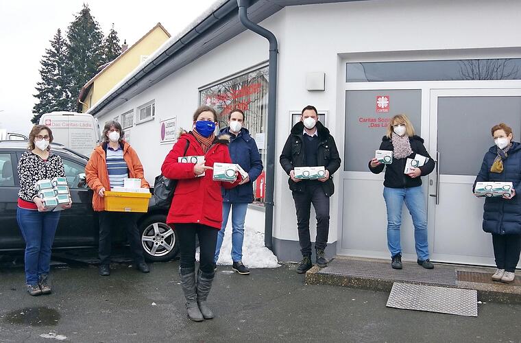 Von der ebenso schnellen wie großzügigen Unterstützung zeigten sich Caritas-Kreisgeschäftsführerin Cornelia Thron, die Leiterin der Abteilung Soziale Hilfen, Irene Piontek, sowie "Lädla"-Leiterin Silvia Tübel völlig überwältigt. Nach der Verlautbarung am Dienstag vergangener Woche der FFP2-Maskenpflicht im Nahverkehr und beim Einkaufen, habe man - so Irene Piontek - überlegt, wie man das handhabe. "Bereits einen Tag später - am Mittwoch - kam schon der Anruf des Rotary Clubs über die Spende", würdigte sie.