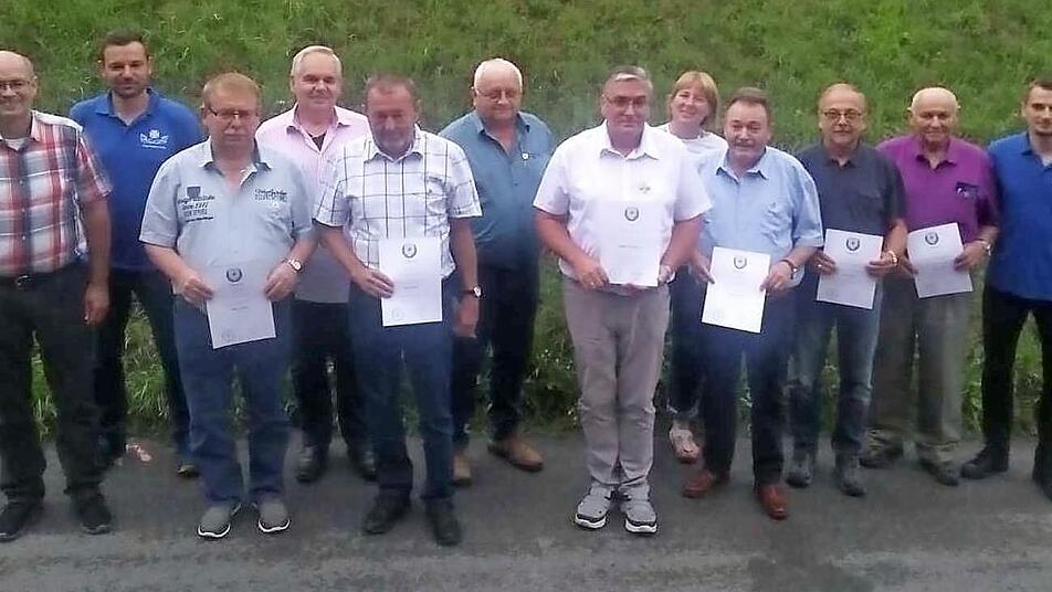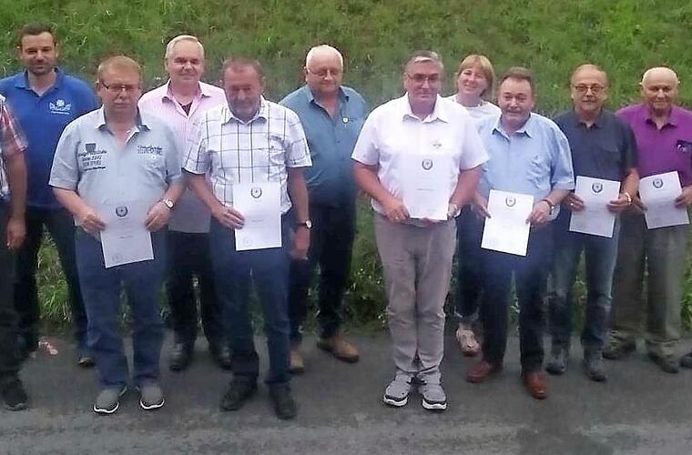 Für 45 Jahre Mitgliedschaft erhielten Michael Fischer und Ottmar Kraus die Urkunde. 40 Jahre lang hielten die Mitglieder Dieter Müller, Albert Jakob und Walter Deinlein dem Verein die Treue. Norbert Krüger und Otmar Zwingmann waren die weiteren Jubilare mit 35 Jahren bzw.