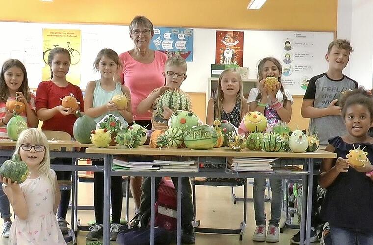 Selbst im Schulgarten angebaut und geerntet, haben die Mädchen und Buben, die die Mittagsbetreuung der Grundschule Zeil/Sand besuchen, viele Kürbisse in allen Farben und Formen. Jetzt stand kreative A...