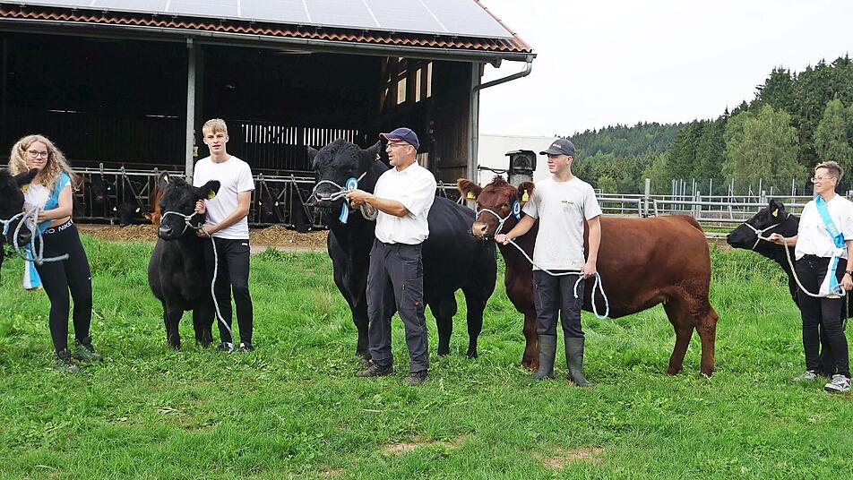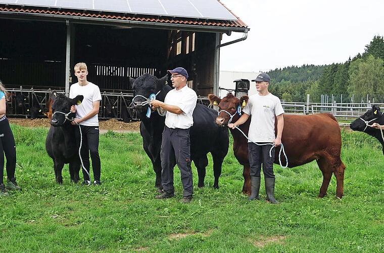 Biobauer Michael Greim aus Marktschorgast , der seinen Betrieb entsprechend dem Demeter- Anbau bewirtschaftet, hat sich spezialisiert auf die Zucht der schwarzen und roten Angus-Rinder. Dadurch hat er sich im Rahmen der Mutterkuhhaltung für die Fleischproduktion entschieden. Er besuchte mit seiner Mannschaft die 6. Landestierschau der Fleischrinder in Moosbach in der Oberpfalz. „Es war keine leichte Aufgabe“, sagte Greim, „die fünf Tiere halfterführungsfähig zu machen. Das erforderte eine Woche lang täglich ein bis zwei Stunden Training. Dann mussten die Tiere mit einem großen Hänger nach Moosbach transportiert werden.“ Es hat sich gelohnt. „Mit einem schwarzen Jungrind, das Kirsten Feulner geführt hatte, gewannen wir einen Klassensieg“, strahlte der Bauer. Und erzählte weiter: „Wir konnten bei der Betriebssammlung einen Reserve-Landessieger erringen. Da waren wir mit fünf Rindern und einem Bullen vertreten. Bei der Nachzuchtschau stellten wir den Landessieger. Da waren wir mit vier Töchtern des Bullen Limit.ba siegreich. Dafür verlieh uns Finanzminister Albert Füracker eine Züchtermedaille in Silber.“