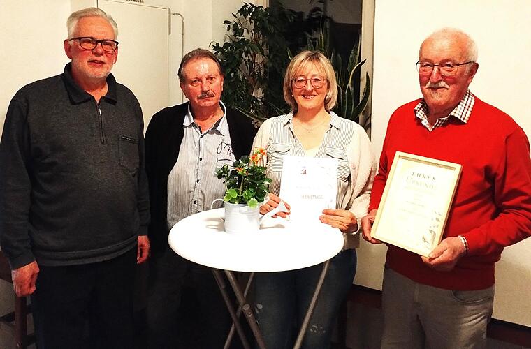 Unser Bild zeigt Schriftführer Michael Schott, Vorsitzenden Günther Bauer mit Katrin Seiferth und dem neuen Ehrenmitglied Hermann Dörfler.