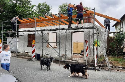 Den Dachstuhl hatte 1957 der Zimmerermeister Peter Krauß errichtet, diesmal übernahm die Arbeiten erneut ein Peter Krauß, der Enkelsohn des damaligen Zimmerermeisters.