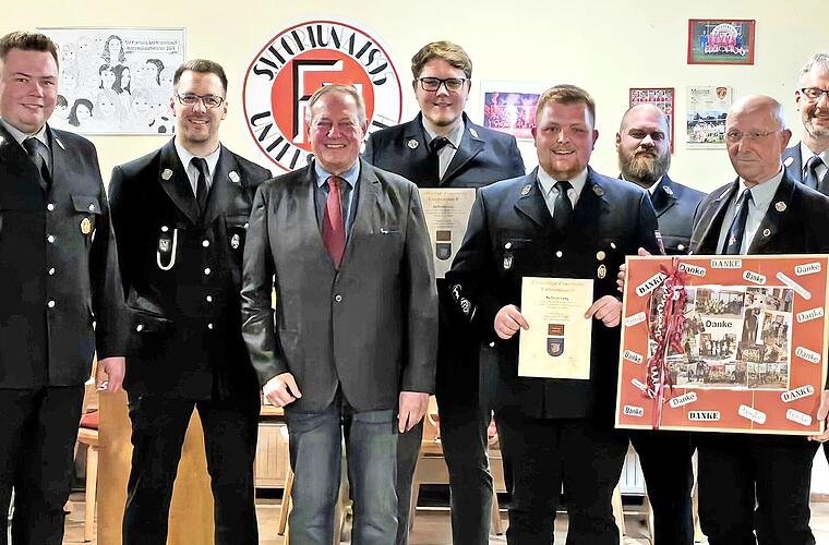 Kreisbrandmeister Alexander Reinsch dankte für den Einsatz der Aktiven. Er würdigte in besonderer Weise das Engagement rund um die Kinderfeuerwehr in Untersteinach , die 2013 gegründet wurde. Von Anfang an zeichnete Werner Agly hierfür verantwortlich. Nach 13 Jahren gab er dieses Amt nun ab. Die beiden Kommandanten sowie die beiden Vorsitzenden würdigten sein Engagement und bedankten sich in Form eines Präsents.