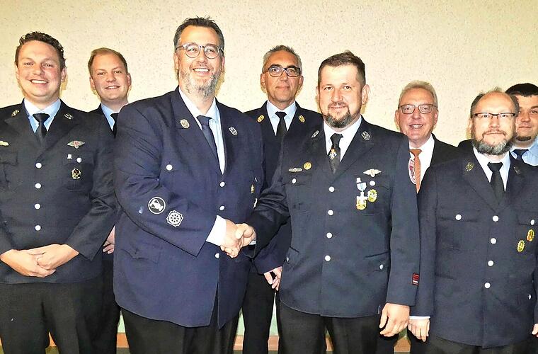 Stabwechsel an der Spitze der Vorstandschaft des Feuerwehrvereins Neudrossenfeld : Nach 17 Jahren erfolgreicher Amtszeit als Erster Vorsitzender gab Björn Sommerer sein Amt in jüngere Hände. Zum Nachfolger wählten die Mitglieder in der Jahreshauptversammlung den 40-jährigen Tobias Schirmer, der beim Stadtbauhof Bayreuth als Straßenbauer beschäftigt ist. Zum stellvertretenden Vorsitzenden wurde Thomas Großkopf gewählt.