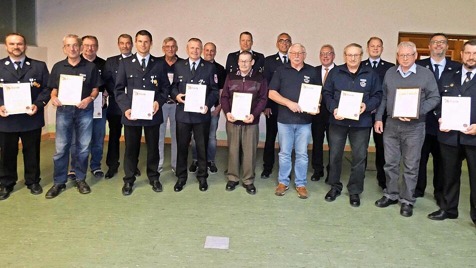 In seiner letzten Tätigkeit als Vorsitzender nahm Björn Sommerer noch zahlreiche Ehrungen für 25-, 50-, 60- und 70-jährige Mitgliedschaft vor. Mit der Ehrenmitgliedschaft wurden Helmut Pöhner und Norbert Götz ausgezeichnet. Vorsitzender Björn Sommerer blickte noch einmal zurück und verwies dabei auf zahlreiche Höhepunkte im Feuerwehrverein . Er dankte allen Mitgliedern für eine gute Zusammenarbeit und stellte zufrieden fest: „Klasse, dass es in unserer Vorstandschaft so funktioniert hat. Wir dürfen aber auch unsere Frauen nicht vergessen, die bei den vielen Veranstaltungen immer sehr viel mitgeholfen haben. Ich freue mich, dass ich eine geordnete Vereinsstruktur meinem Nachfolger übergeben kann.“