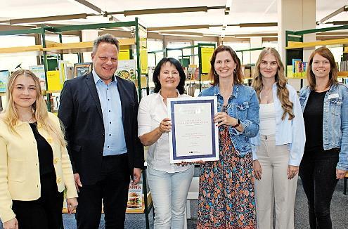 Oberbürgermeister Lehmann gratulierte dem Team und betonte: „Unsere Stadtbücherei ist bei ihren Kundinnen und Kundinnen überaus beliebt. Das liegt vor allem an unserem aktiven und neugierigen Büchereiteam, das sich immer wieder etwas Neues rund um die wichtigen Themen ,Lesen’ und ,Lesekompetenz’ einfallen lässt. Ich bin mir sicher: Diese besondere Leidenschaft fürs Lesen wird die Mannschaft mit genauso viel Herzblut auch an junge Menschen weitergeben, die sich für eine Ausbildung in unserer Bücherei entscheiden!“ red