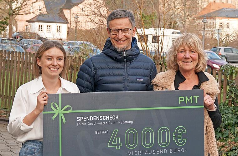 Die Firma PMT- Premium Mounting Technologies aus Stadtsteinach sparte sich Weihnachtskarten und Kundengeschenke und bedachte stattdessen die Geschwister-Gummi-Stiftung mit einer Spende . Helmut Weiß, Leiter Marketing & Kommunikation von PM, übergab einen Scheck über 4000 Euro.