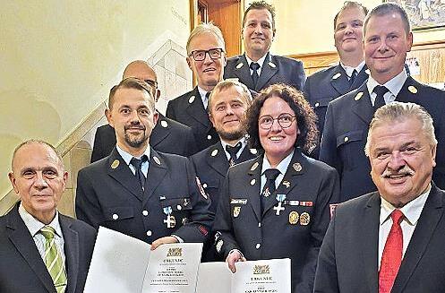 Hochrangige Auszeichnungen gab es für verdiente Feuerwehrleute. Landrat Klaus Peter Söllner überreichte die Ehrenzeichen.