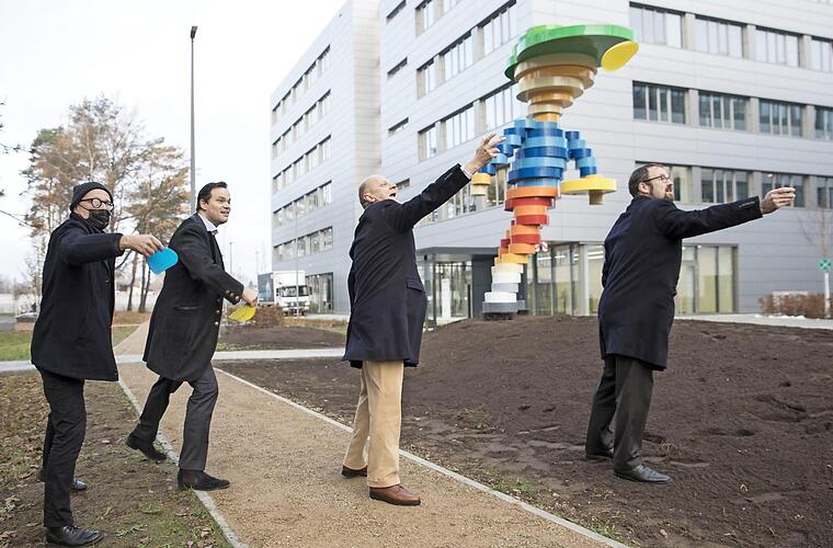 "Der Campus kombiniert viele Aspekte: Er verbindet Industrie, Wissenschaft und Innovation mit der Stadt und soll darüber hinaus zu einem lebendigen Begegnungsort für die Erlanger werden. Kunst kann dabei unterstützen, Neugierde zu wecken, sich mit diesem Ort zu identifizieren und das Arbeitsumfeld attraktiv zu machen. Wir hoffen, dass die Menschen, die hier wohnen und arbeiten, sich an der Skulptur erfreuen", sagte Ralf Thomas.