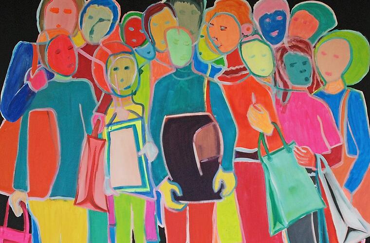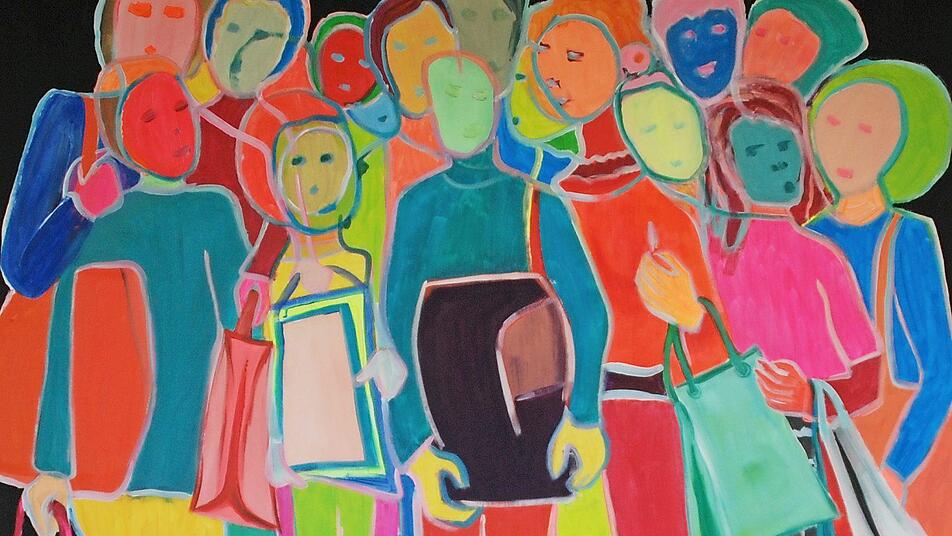 Thema der Ausstellung ist "Was wir vermissen". Und das ist in der Corona-Zeit eine ganze Menge: Urlaubsreisen, Besuche bei der Oma, große Familienfeiern, spontane Treffen mit mehreren Freunden, unbekümmerte Shoppingtouren ohne Maske und Abstand. Barbara Bollerhoffs farbenfrohe Bilder und Skulpturen, die bei der Ausstellung zu sehen sind, stellen all diese Szenen dar, die vor der Pandemie ein selbstverständlicher Teil unseres Lebens waren und jetzt so irreal scheinen.