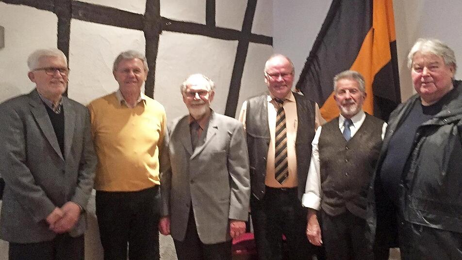 Vorsitzender Albert Laudensack ehrte langjährige Mitglieder: Wilhelm Schmitt (25 Jahre), Roman Jonas und Norbert Zecha (beide 50 Jahre), Josef Weiß (60 Jahre). Sie erhielten Ehrennadeln, Urkunde und Präsente. Oskar Beudert (60 Jahre) und Elmar Beudert (65 Jahre) werden noch geehrt, ebenso wie Paul Früh, der als Ehren- und Gründungsmitglied der Kolpingsfamilie seit 70 Jahren die Treue hält. Für jedes zu ehrende Mitglied hatte Laudensack persönliche Worte gefunden, die den Einsatz in der Kolpingsfamilie vorstellten.
