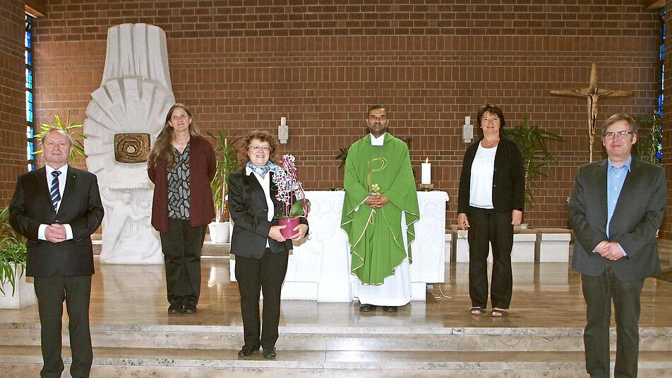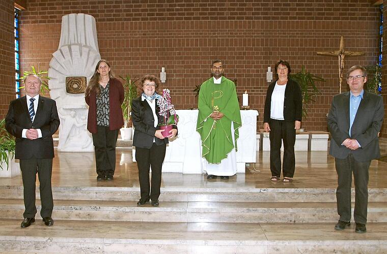 Natürlich bedankte sich auch Pfarrer George Thottankara bei Maisel für den langjährigen, engagierten Dienst in der Pfarrei und wünschte ihr einen angenehmen Ruhestand. Voller Rührung aufgrund der großen Würdigung bedankte sich die scheidende Organistin ihrerseits: unter anderem bei den beiden Pfarreien für die lange Anstellung, bei ihren Sängern und Sängerinnen für ihren Eifer, bei ihrer Familie für die Unterstützung und bei den Gottesdienstbesuchern. Zudem galt ihr Dank der evangelischen Kirchengemeinde für die ökumenische Zusammenarbeit – vor allem mit Klaus Bormann. thi
