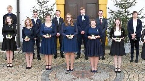 19 Jugendliche feierten in der St.-Gallus-Kirche ihre Konfirmation, auf die sie lange warten mussten. In vier Gottesdiensten führte sie Pfarrerin Almut Weisensee (im Bild, links) an den Tisch des Herr...
