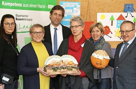 Große Freude herrschte bei der Lebenshilfe Forchheim, als Kreisbäuerin Rosi Kraus und ihre Stellvertreterin Christine Werner im Beisein von BBV-Geschäftsführer Werner Nützel ein Körbchen lokaler Äpfel und einen Kürbis übergaben, dekoriert mit vielen Geldscheinen. Die Scheine ergaben addiert 1450 Euro.