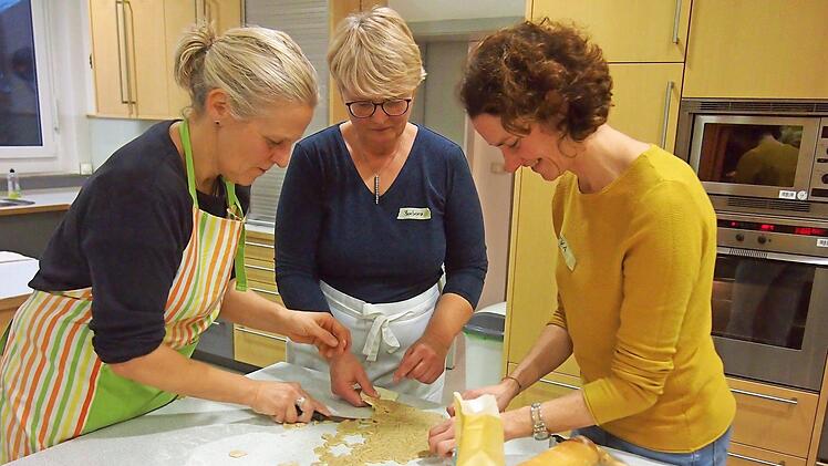 Die gelernte Sozialpädagogin war vom Kronacher Klimabündnis angefragt worden, ob sie nicht einmal einen veganen Backkurs halten wolle. Nelly Gion verzichtet schon seit vielen Jahren auf tierische Produkte und informiert in veganen Kochkursen über die sich immer mehr an Beliebtheit erfreuende Ernährungsweise. "Meine Hauptgründe, mich vegan zu ernähren sind der Tier- und Umweltschutz. Ich möchte Respekt vor Tieren und Offenheit gegenüber der veganen Ernährung vermitteln", erzählte Gion, während die Kursteilnehmer schon fleißig am Werk waren.
