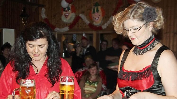 Beim FC-Fasching gab es viel Beifall für die Showeinlage von Ariane Ehrhardt und Michael Fehn. Die Lachmuskeln der Faschingsnarren wurden beim Auftritt der Hirschfelder Leerwaafen (Annette Fehn und Andrea Fröba, im Bild) strapaziert. Das Ganze wurde abgerundet durch den Sketch von Michael Fehn und Markus Grünbeck sowie durch die Einlage von Michael Fehn, Annette Fehn und Ariane Ehrhardt. Frenetischen Applaus gab es für den Auftritt der mittlerweile legendären FC-Truppe. Nachgestellt wurden typische Sportheimgespräche. Auch das Teuschnitzer Männerballett war zu Gast. Foto: V. Schadeck