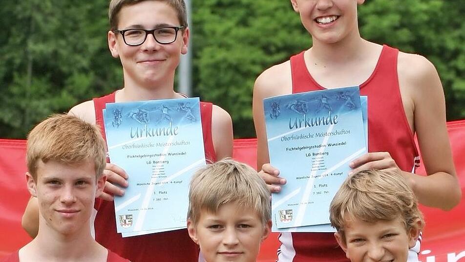 Platz 5 belegte Julius Lehner mit 1457 Punkten, Achter wurde Ioannis Mitsioulis mit 1346 Zählern. Durch diese guten Einzelleistungen holten sich die fünf Athleten der LGB in der Mannschaftswertung den Meistertitel vor der LG Fichtelgebirge. Im Vierkampf der WU18 testete Jana Kraus ihre Vielseitigkeit. Mit 2237 Punkten siegte sie vor Isabel Keil (1549) aus Bayreuth.