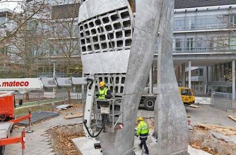 Eine der vier Wing-Skulpturen des berühmten Architekten und Städteplaners Daniel Libeskind wird derzeit auf dem Erlanger Südgelände der Firma Siemens aufgeb...