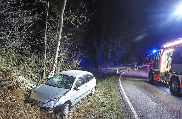 Ein berauschter 43-jähriger Autofahrer verursachte am Montag gegen 20 Uhr bei Wildenroth einen Verkehrsunfall . Laut ersten Informationen kam der Burgkunstadter aufgrund der Witterung und seines Alkoholpegels in einer Linkskurve von der Fahrbahn ab. Dort geriet er mit seinem Ford Focus ins Bankett und fuhr frontal in eine Böschung. Der Mann wurde bei der Kollision leicht verletzt. Ein Atemalkoholtest ergab einen Wert von 0,92 Promille. Der Pkw wurde abgeschleppt. Foto: NEWS5/Merzbach