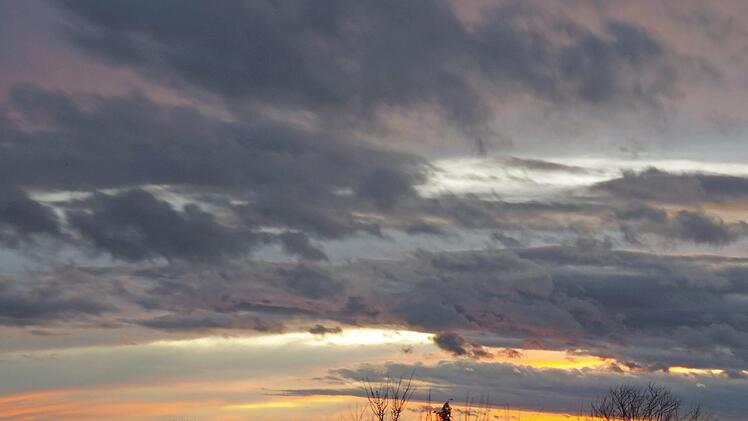 Reichlich Regen und Schnee hatten die Wolken in diesen Tagen im Gepäck, gut für Natur, schlecht für Wohnraum in der Nähe von Flüssen, denn es herrschte Hochwasser . Nach so einem ergiebigen Regentag verabschiedete sich die Sonne vom Tag, an dem sie sonst nicht zu sehen war, und ließ die Regenwolken umso dramatischer wirken. Foto: Thomas Hümmer