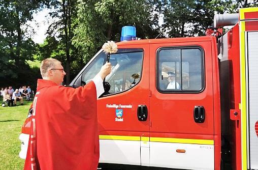 Freude über die Segnung des neuen Tragkraftspritzenfahrzeugs mit Wasser (TSF-W) der Feuerwehren aus dem Banzgau: Nach über drei Jahren Planungs- und Beschaffungszeit erfolgte die Abholung am 8. Juni bei der Firma BTG Brandschutztechnik Görlitz. Stationiert ist das circa 170 000 Euro teure Fahrzeug in Stadel und wird von den vier Wehren des Banzgaus – Altenbanz , Stadel, Püchitz und Zilgendorf – betrieben.