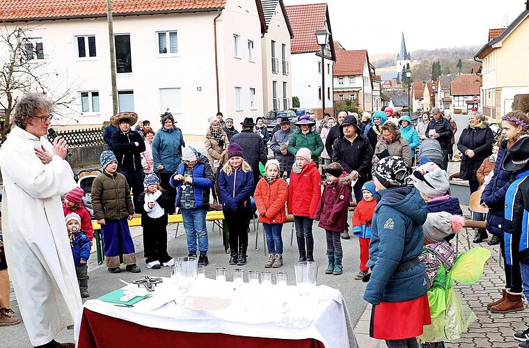 Im Rahmen zur „Kirche on Tour“ fand am vergangenen Sonntag ein „Open Air“- Gottesdienst bei Temperaturen knapp über null Grad vor dem alten Feuerwehrgerätehaus statt. „Als wir uns vor ein paar Wochen trafen und uns Gedanken über diesen Gottesdienst machten, haben wir uns für das Thema „Freude feiern“ entschieden.