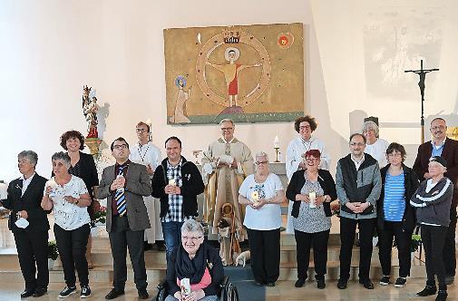Professor Dr. Joachim Kügler hielt bei Regens Wagner Burgkunstadt in der Josefskirche den Gottesdienst am Fest der Jubelkommunion. Sieben Männer und Frauen trugen bei einem feierlichen Einzug stolz die Kerzen. Denn vor vielen Jahren feierten sie das Fest der Erstkommunion und erinnerten sich an diesem Tag gerne daran zurück.