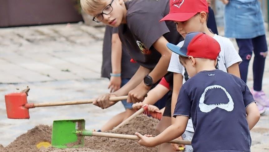 Nicht anders war es bei der Suche nach Münzen im Stroh mit Stadtrat Dieter Schmiedel. Wo sind denn hier die Tiere, fragten einige Knirpse. Denn zunächst hatten die Kinder geglaubt, dass im Tierpferch ein Streichelzoo mit lebenden Tieren aufgebaut wäre. Dem war aber nicht so, denn im Stroh wurden Münzen versteckt, die nach der Suche in einer festgelegten Zeit von den Findern behalten werden durften.