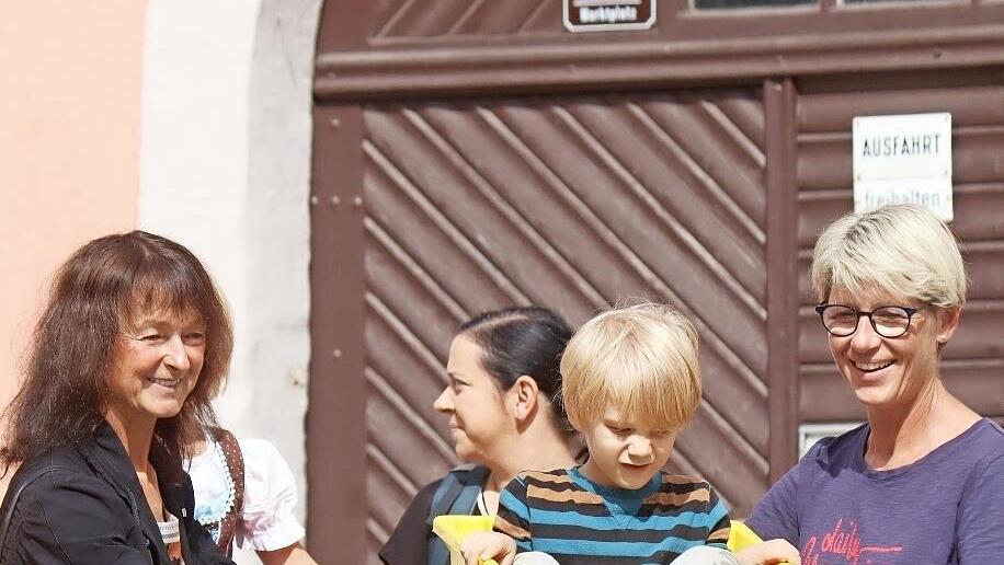 Für Spannung, Abwechslung und Spaß auf der historischen Spielwiese sorgten zahlreiche Angebote. Zunächst hieß es für die Kinder „Schuhe runter“ und rauf auf die riesige Hüpfburg des Spielmobiles des Landkreises. Als sehr beliebt zeigte sich einmal mehr das Entenfangen, welches Zweite Bürgermeisterin Susanne Bock von Wülfingen den Kindern zeigte. In Vierergruppen mussten sie versuchen, in einer vorgegebenen Zeit mit Magnetstöcken kleine Enten aus einem Pool zu angeln, was immer wieder viel Freude für Gewinner und sogar Verlierer brachte.