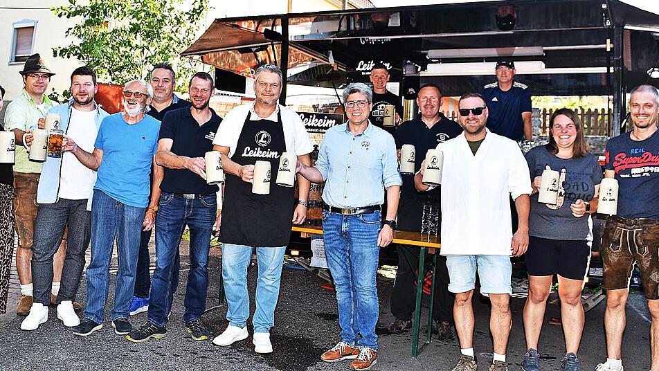 Standesgemäß wurden bei bestem Festwetter dann gemeinsam die Krüge gehoben. Viele ließen sich in dieser beschaulichen Umgebung mit ihren schattigen Bäumen das erfrischende Fassbier aus dem Brauhaus Leikeim schmecken und genossen bei alledem auch die speziellen Kirchweihspeisen. Wieder einmal der „Geheimtipp“ bei allen Festbesuchern waren die leckeren Haxen, die von Dieter Gruber und seinem Team, natürlich nach ihrem Spezialrezept, zubereitet worden waren.