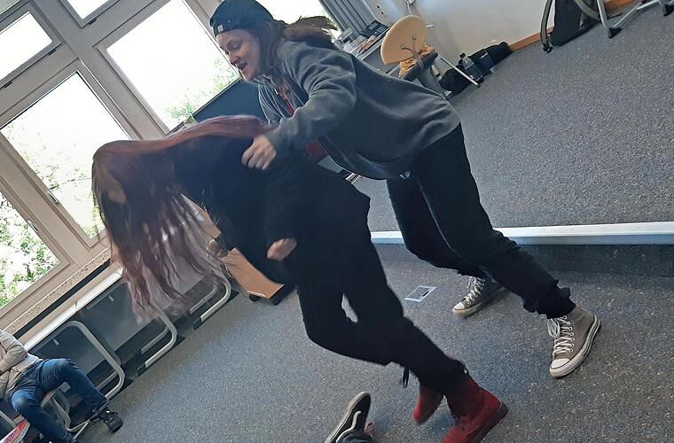 Das Kinder- und Jugendtheater Chapeau Claque aus Bamberg hat in zwei Aufführungen in der 8. Jahrgangsstufe mit einem besonderen Stück Lehrkräfte und Schülerschaft zum Nachdenken angeregt. „Respekt!“ zeigt drei Szenen – drei Lebenswelten – drei Formen der Diskriminierung, die allzu häufig Bestandteil im Alltag der Jugendlichen sind – sei es als Betroffene oder Betroffener, sei es als Täter oder Täterin.