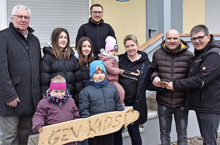 CSU-Ortsverbandsvorsitzender Markus Pülz überreicht das Spendengeld an den Vorsitzenden des Geflügelzuchtvereins, Markus Schreiber und an Jugendleiterin Nicole Matuschek (vorne v. r.) im Beisein einiger Mitglieder des Geflügelzuchtvereins sowie Er...