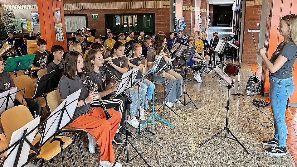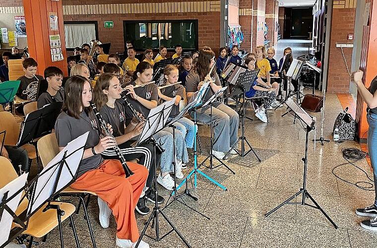 Bevor die beiden Bläserklassen der Pater-Lunkenbein-Schule (in Zusammenarbeit mit der Musikvereinigung) mit ihren Stücken das kleine Vormittagskonzert beendeten, zeichnete Zweiter Vorsitzender Krüger junge Musiker für bestandene Prüfungen aus und überreichte allen Viertklässlern für das Juniorabzeichen ein kleines Geschenk. Nachdem diese die Pater-Lunkenbein-Schule verlassen, haben sie die Möglichkeit, ihr musikalisches Hobby in der Juniorband weiter zu betreiben. Nicht nur Bürgermeister Bernhard Storath fühlte sich mit etwas Wehmut in seine musikalischen Anfänge in seiner Jugendzeit zurückversetzt.