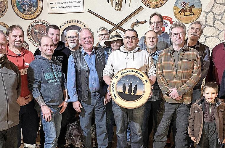 Nach der abendlichen Verköstigung im Vereinsheim steigerte sich die Spannung, als Schützenmeister Martin Thomas und Dominik Kaiser zur Siegerehrung übertraten. Beide bedankten sich für die Teilnahme, das gute Gelingen des Schießens und riefen Bernd Beuschel als Gewinner der Dreikönigsscheibe aus. Er erzielte den besten Treffer auf dem Herzkönig und darf nun seinen Namen auf der vom Vorjahressieger Hans Scherr gestifteten Scheibe verewigen.